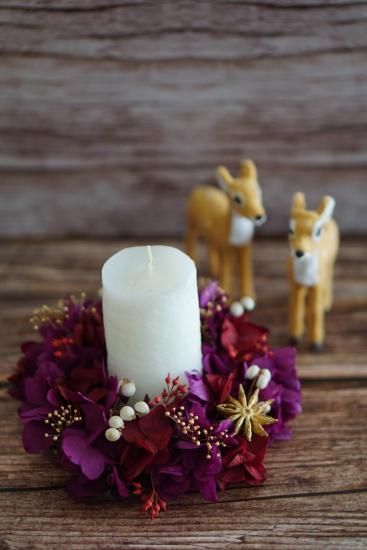 壁に普通に掛けて飾るもよし。写真のように...真ん中にキャンドルを置いてテーブルや棚に飾るのも良いですよ。