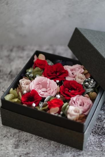 持ち運びにも飾る場所も選ばないことから人気のボックスフラワー。